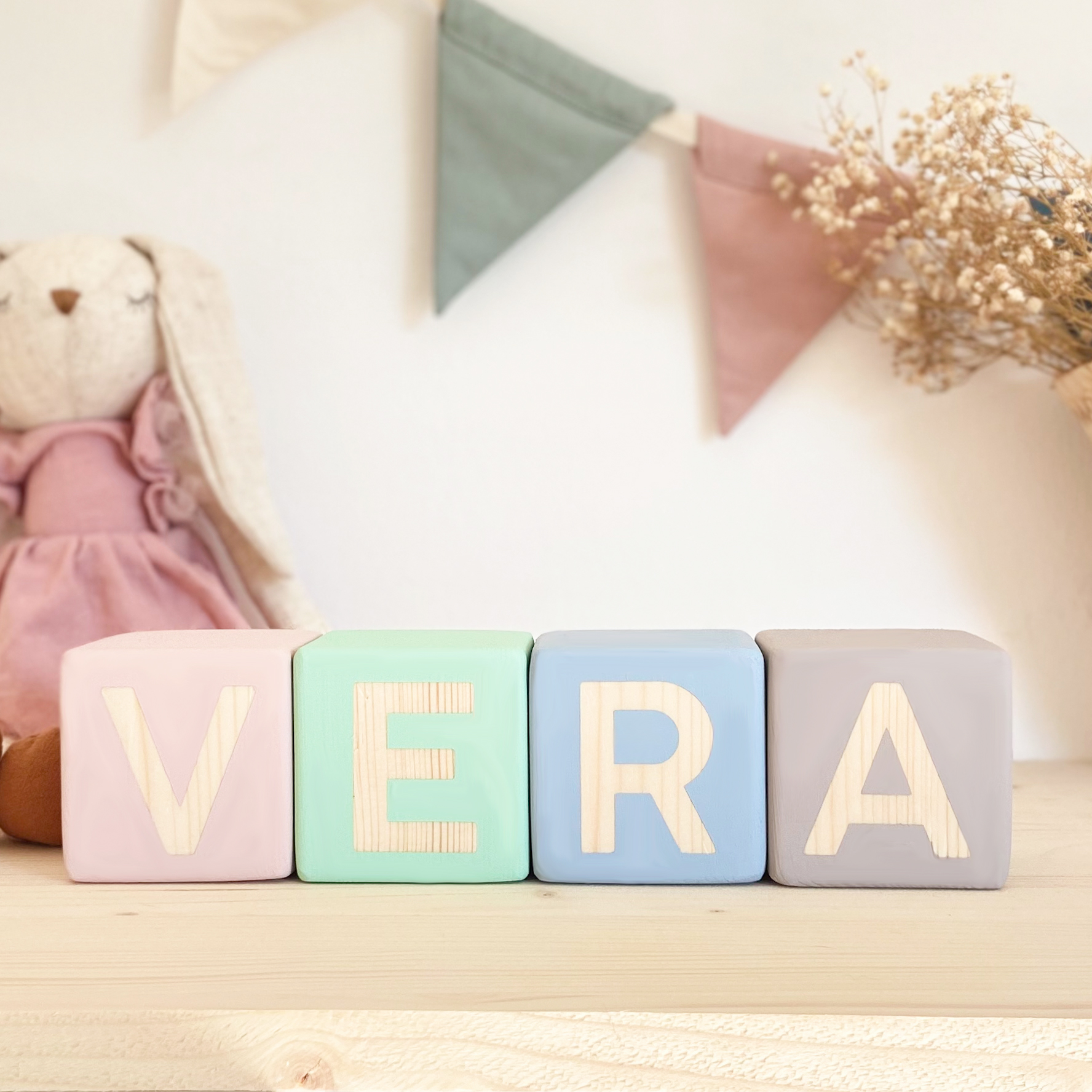 ¡ Ideales, originales, únicos y especiales ! Así son los cubos de Mami Mint, pintados con pinturas no tóxicas aptas para bebés en colores pasteles, ideales para apilar y jugar mucho. Están pintados a mano y hechos con mucho amor.