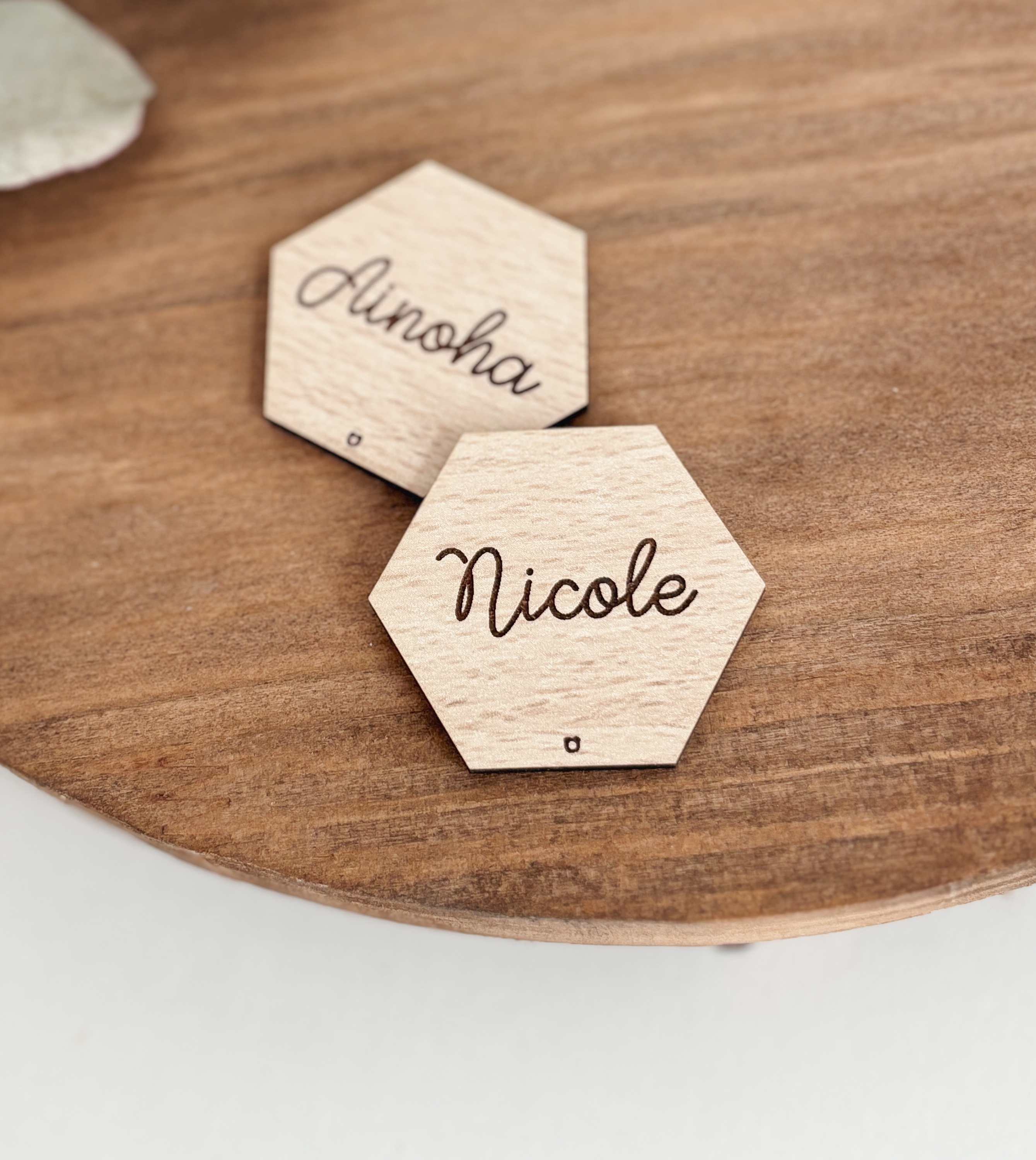 Etiquetas bautizo, boda, comunión, madera, marcasitios, original, regalo
