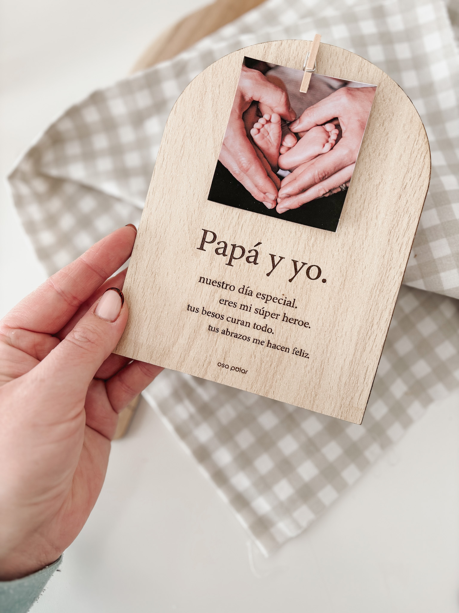 Grabado en madera de alta calidad nuestro portafotos con foto incluida (puedes adjuntarla aquí o enviarla por email) recibirás un marco precioso para que este día sea el más especial.