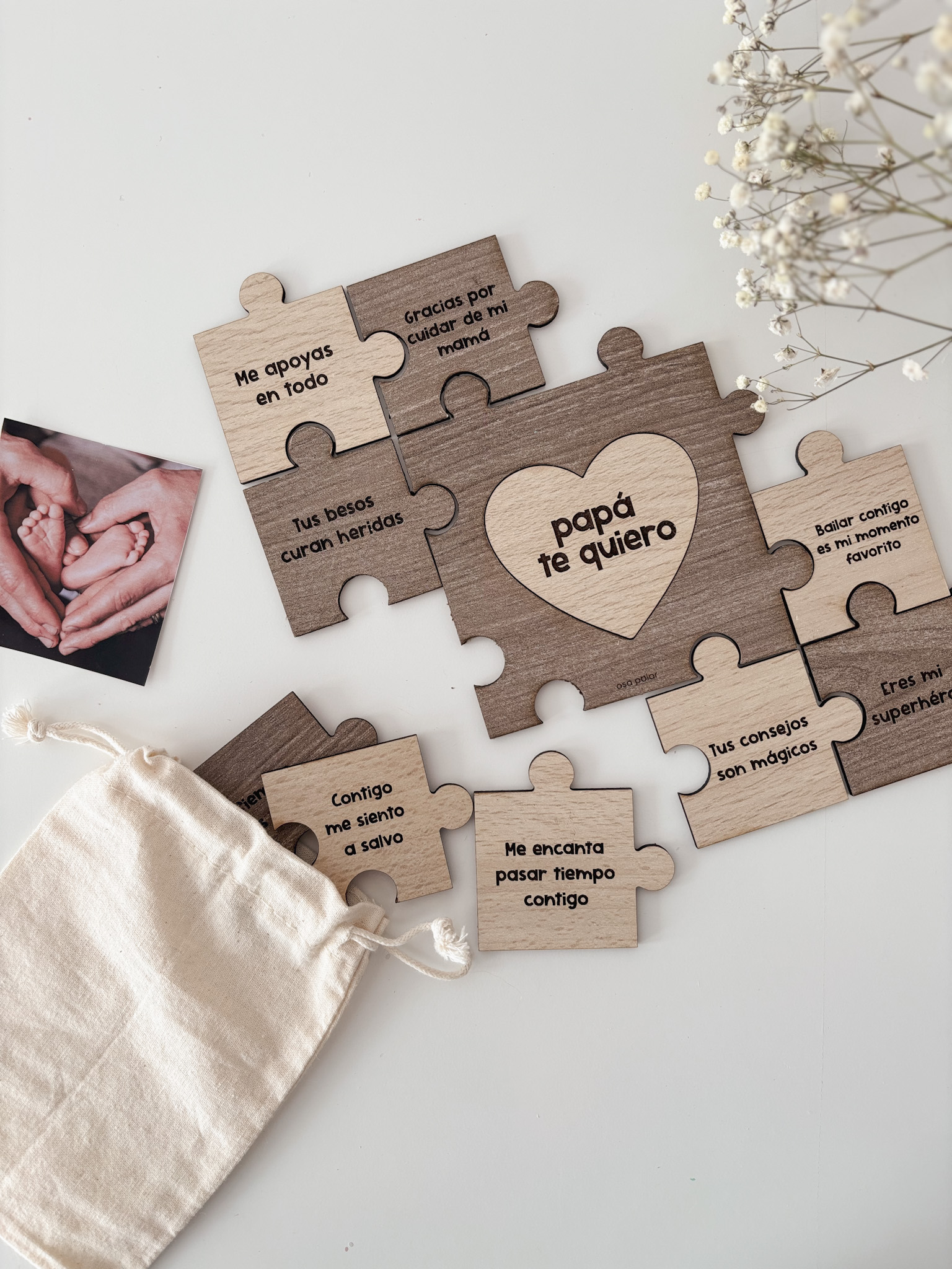 La cara que va a poner papá al montar el puzzle sorpresa que le ha preparado su peque va a ser brutal. Hemos creado un puzzle sopresa que recibirás dentro de una bolsita de tela para sorprender a papá esta temporada.